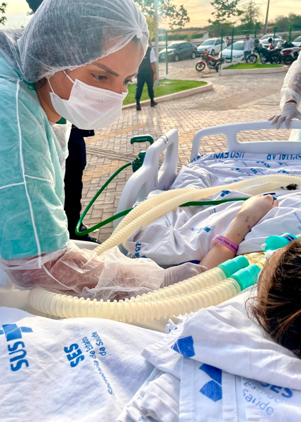“Eu precisava sentir o vento novamente”, disse a paciente de 27 anos, internada no Novo Hospital Regional de Picos, unidade administrada pela Sociedade Brasileira Caminho de Damasco (SBCD). Na segunda-feira, 19 de janeiro, com o suporte da equipe da Unidade de Terapia Intensiva (UTI), ela teve um momento de respiro ao sair do ambiente hospitalar e, após 29 dias de internação, pôde ver e sentir a luz do sol.