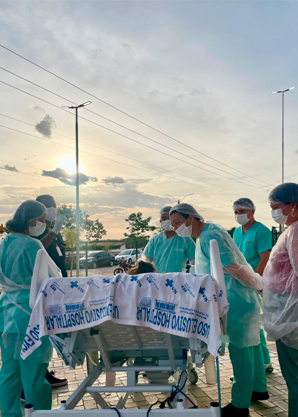 Viabilizar a ação demandou um trabalho árduo, planejamento e integração entre os profissionais envolvidos. Foram reunidos equipamentos para garantir a monitorização contínua dos sinais vitais e a manutenção da ventilação mecânica durante todo o percurso.