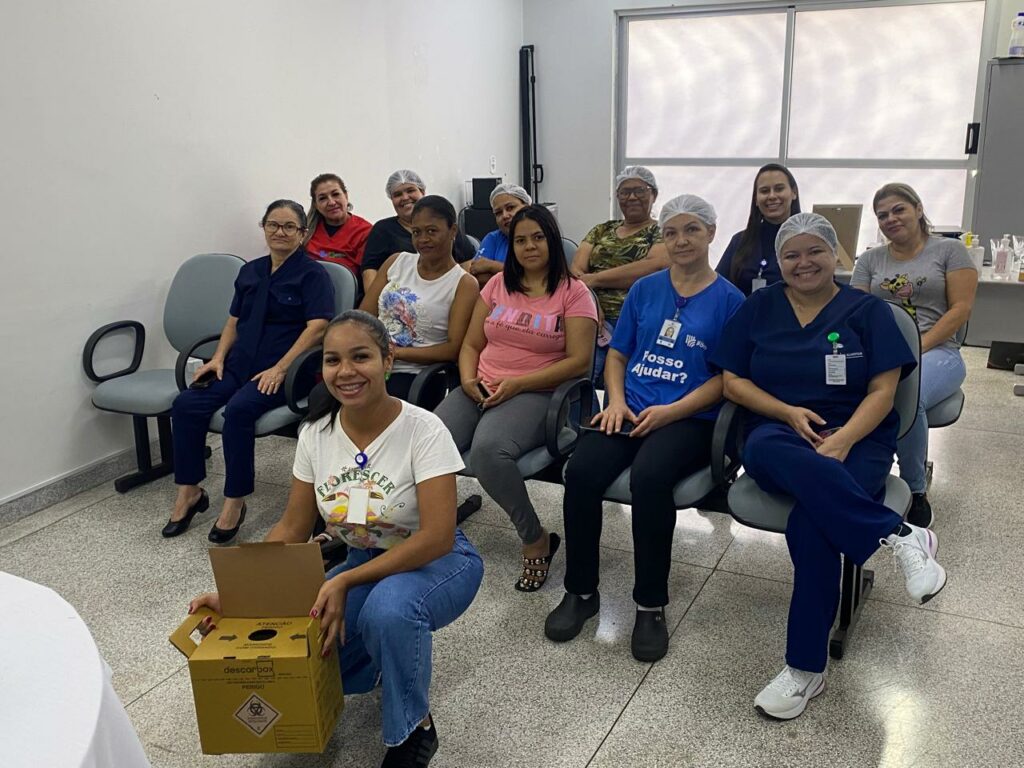Colaboradoras durante o treinamento de biossegurança no Hospital do Povo, em Iturama. Foto: SBCD