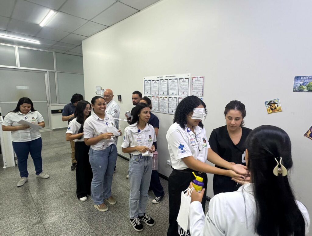 Durante a ação, os presentes vivenciaram na prática a técnica de higiene das mãos conforme as orientações da Organização Mundial da Saúde (OMS). “Com tinta nas mãos e os olhos vendados, os participantes realizaram o procedimento e, ao retirar a venda, puderam visualizar claramente os pontos que precisavam ser aprimorados em sua técnica diária. A iniciativa contou também com explicação sobre as metas internacionais de segurança do paciente, estudo com visualização de colônias de bactérias e aplicação de jogo com cards de certo e errado (uso de adornos)”, detalhou Daniele Lourenço, supervisora do Serviço de Controle de Infecção Hospitalar (SCIH) do HMC.