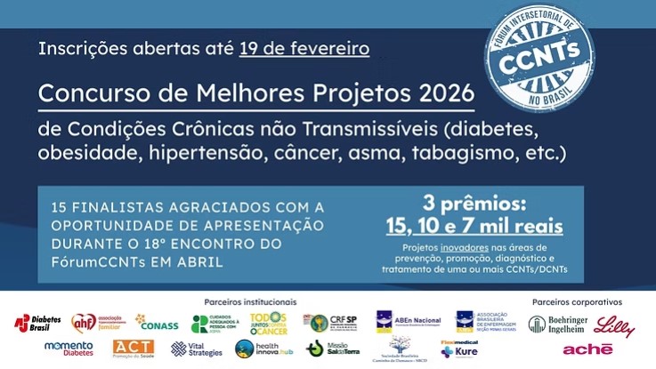 A Sociedade Brasileira Caminho de Damasco (SBCD) é uma das organizações parceiras do Concurso de Melhores Projetos Intersetoriais e Multistakeholder para o Enfrentamento às Condições Crônicas Não Transmissíveis (CCNTs) 2026, promovido pelo Fórum CCNTs.