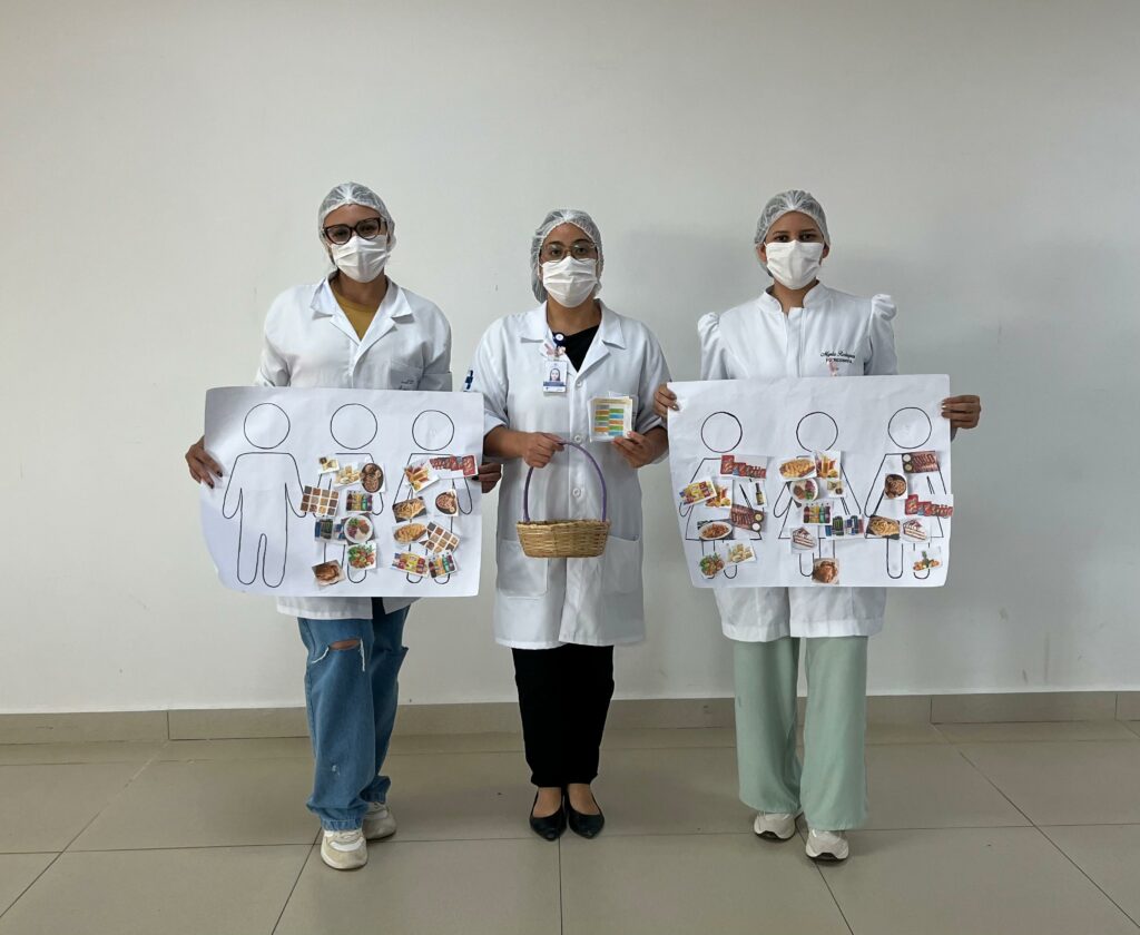 A programação contou com momentos dinâmicos e educativos que envolveram diferentes públicos da unidade. Para os pacientes, a equipe de nutrição realizou uma dinâmica interativa. Utilizando figuras ilustrativas para representar os alimentos e estimular a reflexão sobre os hábitos alimentares de cada participante. E a partir dessa construção simbólica do “prato do paciente”, os profissionais ofereceram orientações personalizadas. Levando em consideração as comorbidades e necessidades nutricionais individuais.