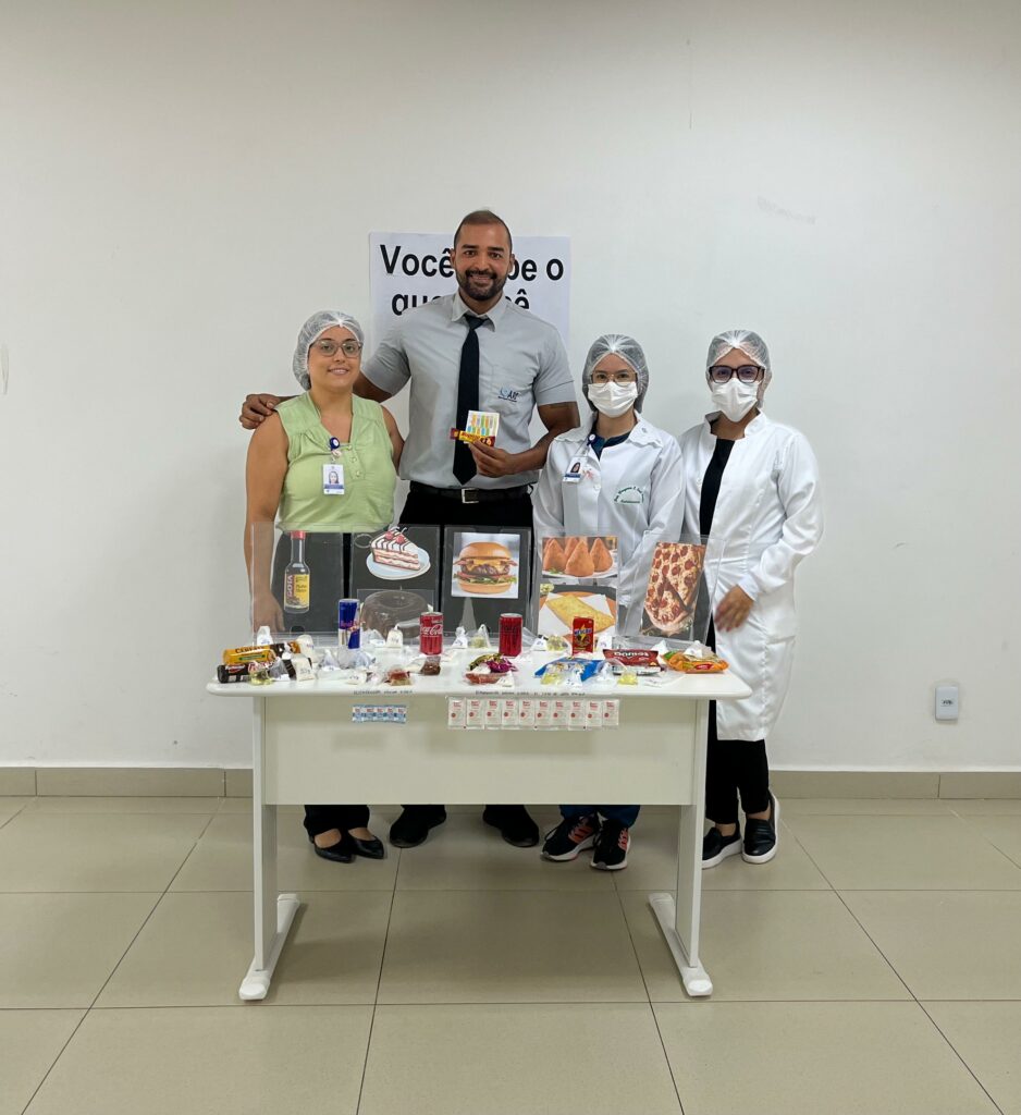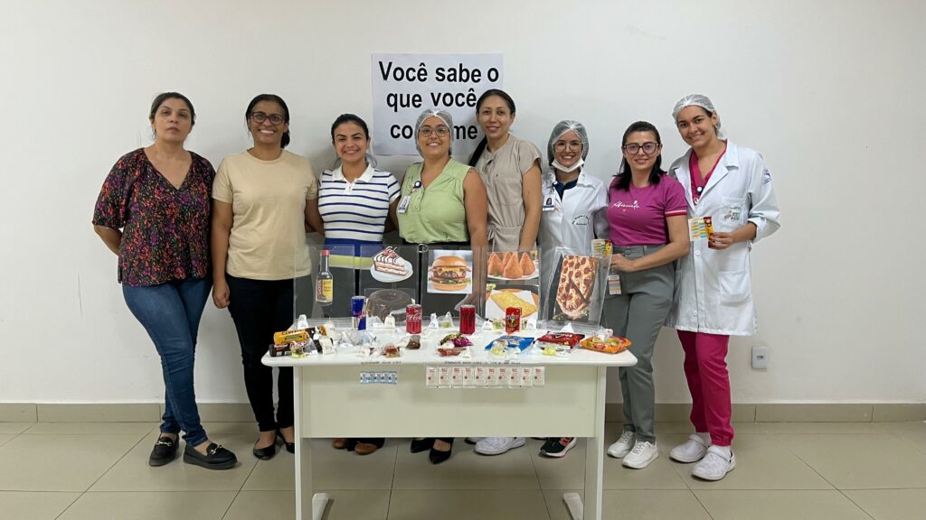 Enquanto isso, com os colaboradores, a proposta foi promover o aprendizado de forma leve e participativa. E assim, eles participaram de um quiz de perguntas e respostas sobre nutrição, alimentação saudável e curiosidades. Dividindo assim, os participantes em grupos para estimular o engajamento. Além disso, a equipe preparou uma exposição educativa, mostrando a quantidade de açúcar, sal e óleo presente em alimentos consumidos diariamente. Ou seja, o comparativo com os valores recomendados buscou causar um impacto visual e incentivar escolhas mais conscientes no cotidiano.