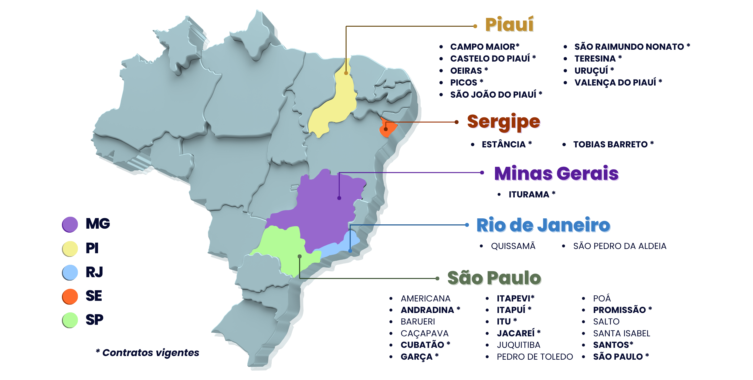 Trabalhamos em diversos municípios e obtivemos um know-how que nos proporcionou atuar em mais de 25 cidades durante nossa existência. Aliando o profissionalismo e transparência, construímos uma gestão eficiente e de qualidade em todos os lugares onde atuamos.
