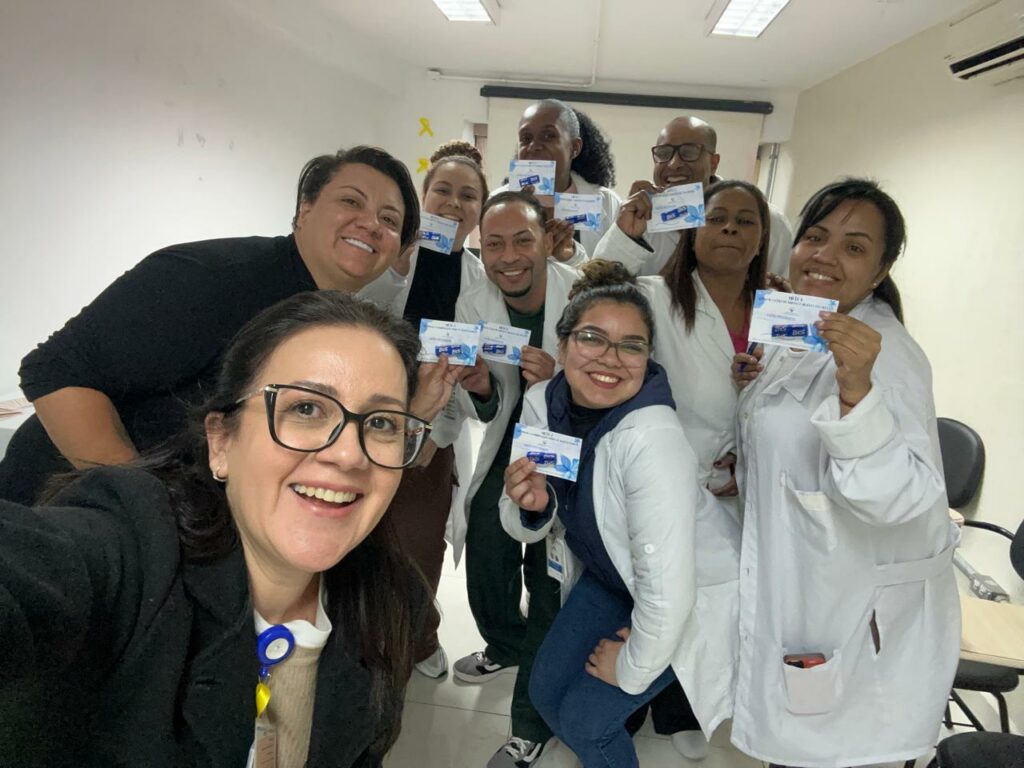 Sendo assim, durante os dois dias, também houve a distribuição de crachás informativos com as Metas Internacionais de Segurança do Paciente. Além da instalação de sinalizações sobre medicações de alto risco. Ampliando o acesso dos colaboradores a informações essenciais para o cuidado seguro.