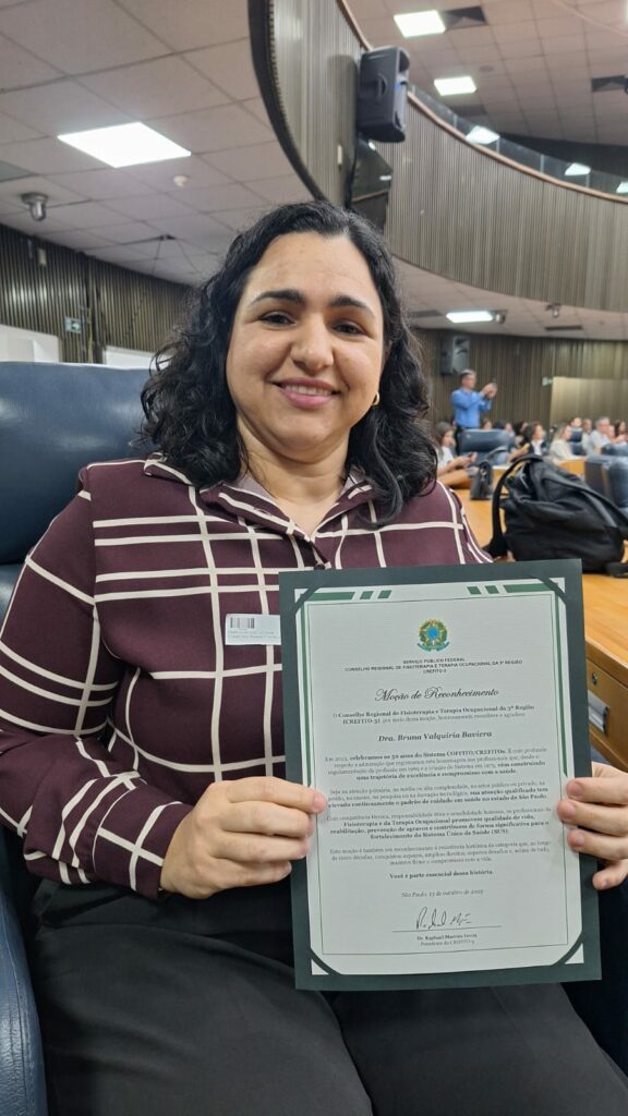 Dessa forma, a homenagem reforça o reconhecimento à trajetória de Bruna Baviera e ao impacto positivo de seu trabalho no cuidado e na reabilitação de pacientes atendidos pelo AME CRI Norte. A solenidade também celebrou os 50 anos de criação dos sistemas CREFITO e COFFITO (Conselho Federal de Fisioterapia e Terapia Ocupacional). Ou seja, destacando o compromisso e a dedicação de profissionais que se tornaram referência em suas áreas de atuação.