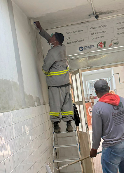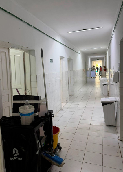 Paralelamente, a unidade passou por intervenções voltadas à conservação e qualificação dos espaços físicos. As equipes atuaram na intensificação da limpeza, em serviços de conservação predial e na execução de pinturas em áreas internas e externas do hospital, contribuindo para um ambiente mais seguro e acolhedor para pacientes e trabalhadores.